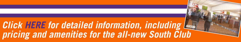 For more than 70 years, Memorial Stadium has been a premier on-campus venue for college football. Death Valley along with Frank Howard Field has a storied history full of tradition and excellence that can be matched by very few.  This fall will mark a new milestone for Memorial Stadium as the all-new South Club will be open for the 2015 season.  This new club area, located in the south stands between the upper and lower levels, will offer the ultimate fan experience. As a new premium seat offering and with Florida State, Notre Dame and Georgia Tech coming to Death Valley in 2015, now is the time to act and reserve your seats in the all-new South Club today! For details including amenities offered, renderings and pricing of the new South Club, please click on the link below.