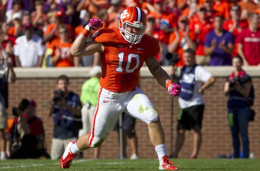 Oct 11, 2014; Clemson, SC, USA; Clemson Tigers linebacker Ben Boulware (10) reacts after making a tackle during the first quarter against the Louisville Cardinals at Clemson Memorial Stadium. Mandatory Credit: Joshua S. Kelly-USA TODAY Sports Clemson Tigers The Clemson football team will begin their final day of fall camp after they went through a two-a-day yesterday. Check out what is going on in Tiger Town. Every morning, we try to give you some news…