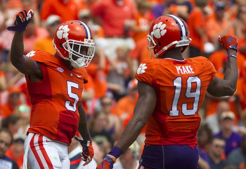 Sep 5, 2015; Clemson, SC, USA; Clemson Tigers wide receiver Germone Hopper (5) and wide receiver Charone Peake (19) celebrate after the play during the first half against the Wofford Terriers at Clemson Memorial Stadium. Mandatory Credit: Joshua S. Kelly-USA TODAY Sports Football The Clemson vs Appalachian State game is set to take place Saturday and there were some changes on the Tiger depth chart after week one. Check it out here. Clemson football had…