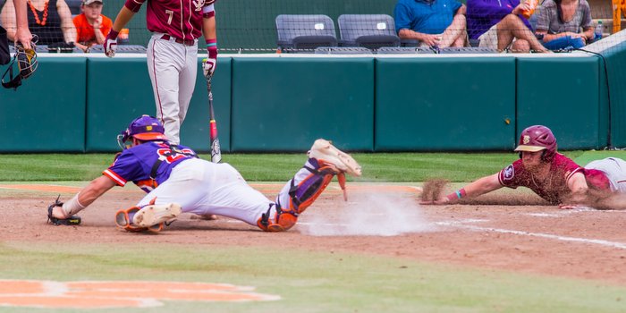Pitching and defense weren’t kind to Clemson Sunday afternoon. Two big errors and other defensive miscues didn’t help a struggling pitching staff as No. 3 Florida St. evened the weekend series with an 11-2 victory over the Tigers at Doug Kingsmore Stadium. (Photo by David Grooms)