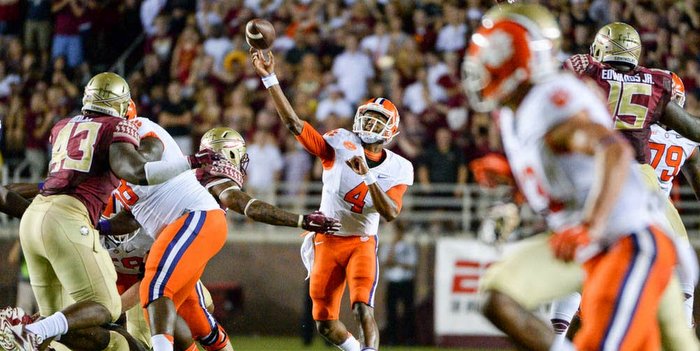 The home crowd at Florida St. Saturday night will be loud and raucous, but Clemson quarterback Deshaun Watson isn’t worried about the noise, the music or the big stage. He knows that the players on the field win games, not the fans in the seats.