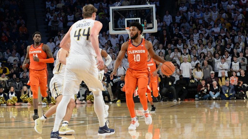 ATLANTA, GA – Marcquise Reed hit the go-ahead shot with 24 seconds to play and Gabe DeVoe set a career-high with 25 points as No. 17 Clemson overcame a 12-point