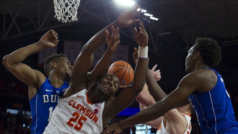 Clemson had their chances against Duke Sunday afternoon, but too many turnovers and not enough scoring was the difference. The Tigers tied the score at 57-57 with under two minutes to play but No. 12 Duke hit shots down the stretch and the No. 11 Tigers didn’t as the Blue Devils escaped Littlejohn Coliseum with a 66-57 victory. Photo by Joshua S. Kelly / USATODAY