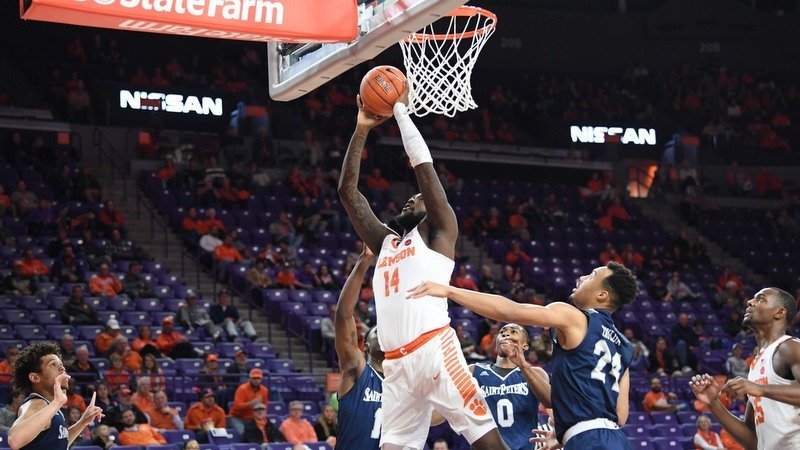 Elijah Thomas scored 14 of his 17 points in the second half, powering Clemson to a 65-60 victory over St. Peter’s Tuesday night in Littlejohn Coliseum. Clemson improves to 6-2 on the season while St. Peter’s falls to 2-6.