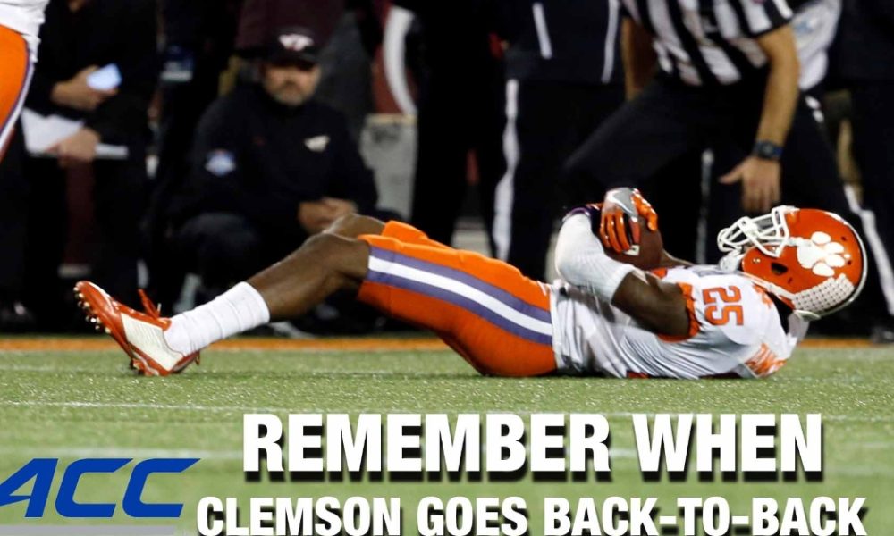 Check out the following flashback video of Clemson’s win over Virginia Tech to clinch their second straight ACC championship back in 2016, courtesy of the ACC D