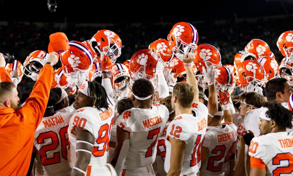 The first of the traditional college football polls released Sunday understandably knocked the previously-No. 5-ranked Clemson Tigers for a 35-14 loss at an unranked Notre Dame team Saturday. Dabo Swinney’s 8-1 group fell to No. 12 in the latest Coaches Poll. With Clemson one of three top-6 teams to