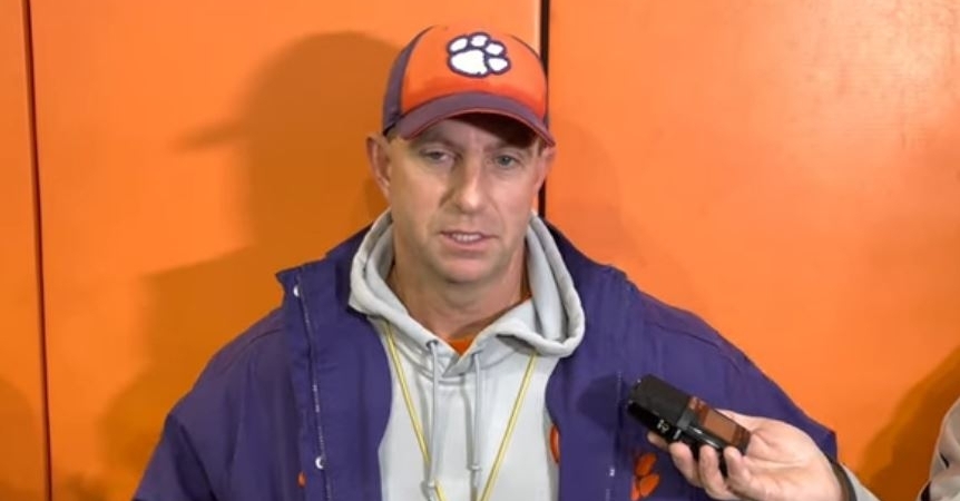Clemson head coach Dabo Swinney spoke to the media before Tuesday’s practice as he shared the latest with his team including roster news on Myles Murphy (opting-out) and Trenton Simpson (hurt):
