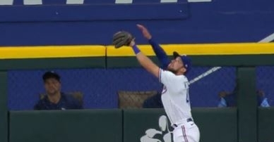 Former Clemson baseball player Eli White showed off his defensive skills in the first inning of the...