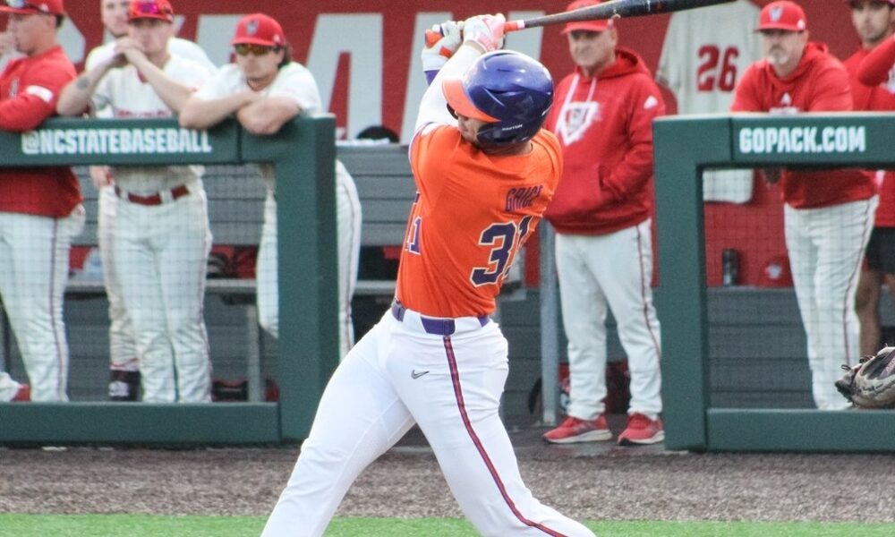 RALEIGH, N.C. – Caden Grice’s grand slam on a 1-2 pitch with two outs in the eighth inning gave Clemson the lead for good in its 9-7 victory over NC State at Doak Field on Saturday night. The Tigers, who took a 2-0 lead in the series, improved to 24-16 overall and 8-9 in the ACC. The Wolfpack fell t