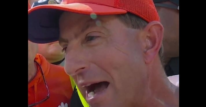 Clemson defeated No. 15 Notre Dame 31-23 inside Death Valley on Saturday afternoon. After the win, Clemson head coach Dabo Swinney told Molly McGrath the following to the Clemson critics of his program. “I know everyone is throwing dirt on us, but if Clemson’s a stock you better buy all you freaking