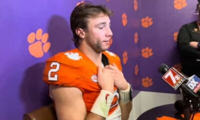 Clemson starting quarterback Caded Klubnik met with the media after the 33-21 home loss to Louisville on...