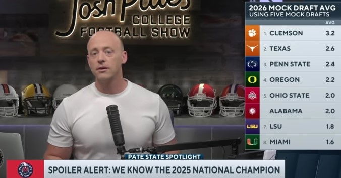 College football pundit Josh Pate says Clemson is winning the 2025 season’s national championship, and he has the science to back it up. Pate cited on his show recently that five of the last six national champions had the most first-round draft picks in the subsequent draft, and seven of the last ei