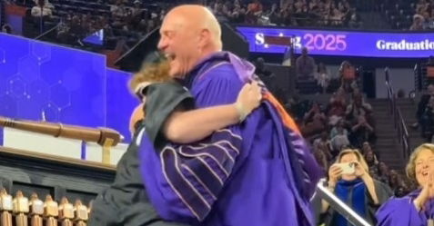WATCH: Clemson President tackled by his daughter at graduation in heartfelt moment