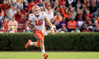 Trevor Lawrence hurt the Gamecocks with his legs and his arm today. | Photo by Streeter Lecka/Getty...